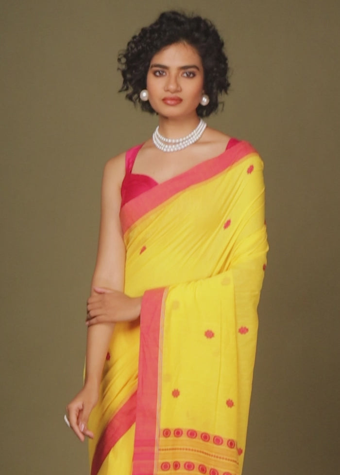 Yellow Pure Cotton Saree With Blouse Piece